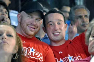 Despite an Earthquake earlier in the week and the threat of a Hurricane looming, GALLOP, (Gay and Lesbian Lawyers of Philadelphia) who have sponsored the event for the 9th year in a row, had over 800 LGBT people and their friends come to watch the Phillies play against the Marlins. With such a large gay presence at the ballpark, it was hard not to feel a little proud. With LGBT Attorney Robert Lenahan throwing out the first pitch, and the Phanatic up to his old tricks, a fun time was had by all. EDGE was scouring the stands to get you these photos.